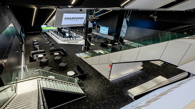 Intimate and sleek, this club features incredible sideline views, turnkey technology, and stunning finishes creating an impressive atmosphere.